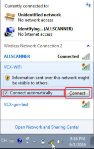 1.Click VCX-WiFi, and check [Connect automatically] ,then click [Connect]