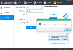 3.Start VX Manager program,select [Device],then click [Configure], Connection Type select [WLAN],click [Save]