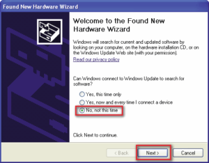 The first time to connect USB cable to the computer, Windows will prompt [Found New Hardware]